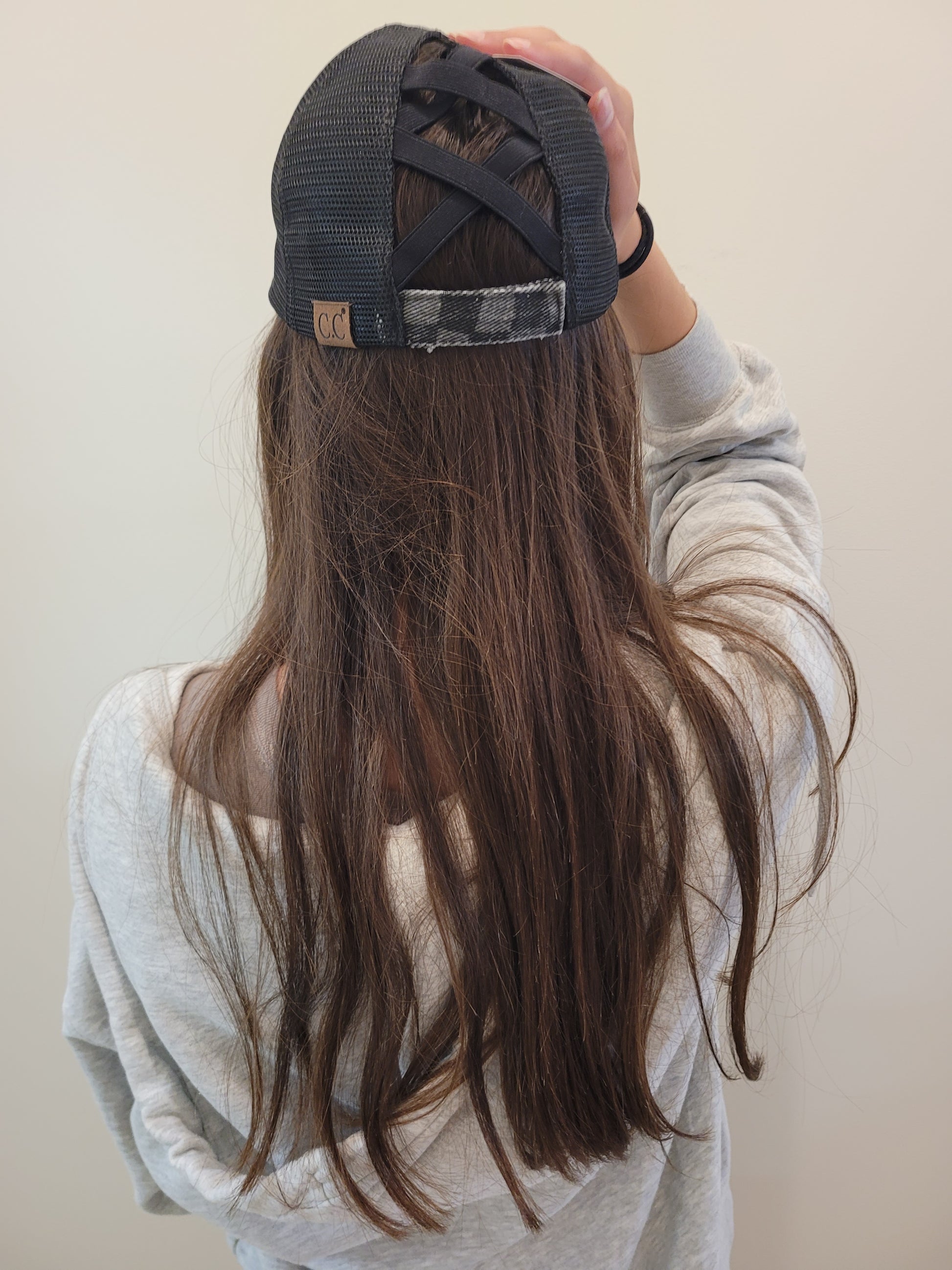 this hat features a check pattern & mesh back for breathability. CC's famous criss-cross feature allows you to wear your hair up or down any time of the year especially summer. The adjustable velcro strap ensures the perfect fit on this 6-panel cap. remember, Cheveux Corp provides the best blank caps for crafting. Get the most out of every day with an authentic cc® brand quality cap. Product features: Check pattern Blank cap for crafting Hidden adjustable velcro strap Authentic CC ® brand quality 6-panel polyester mesh back CC® cap. C.C's Famous Criss-Cross Elastic Feature Perfect for Ponytail, Messy Buns or Wear Your Hair Down Checkered cotton front Distributed by a Family Owned USA Business