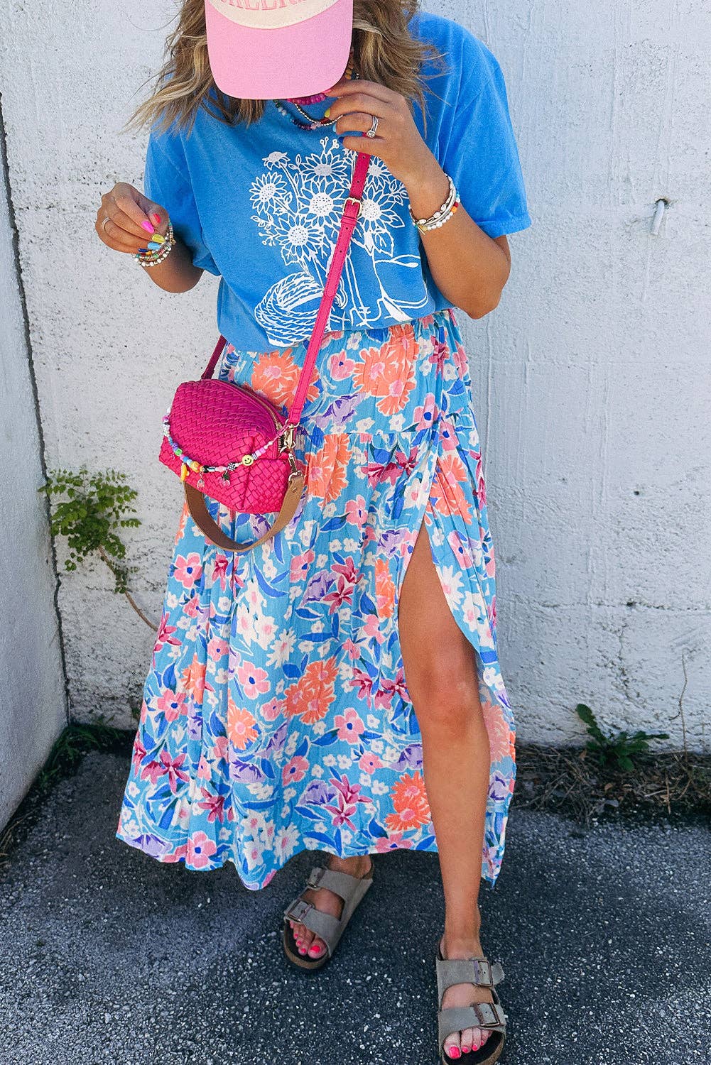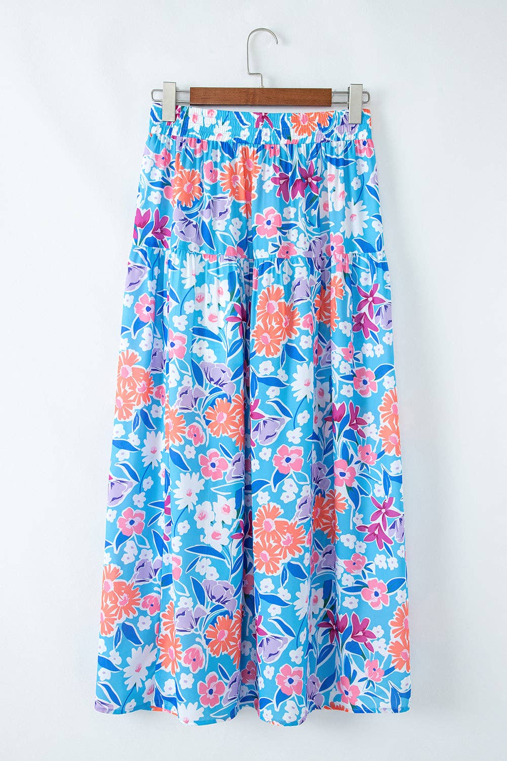 Floral High Waist Wrap Maxi Skirt: Sky Blue