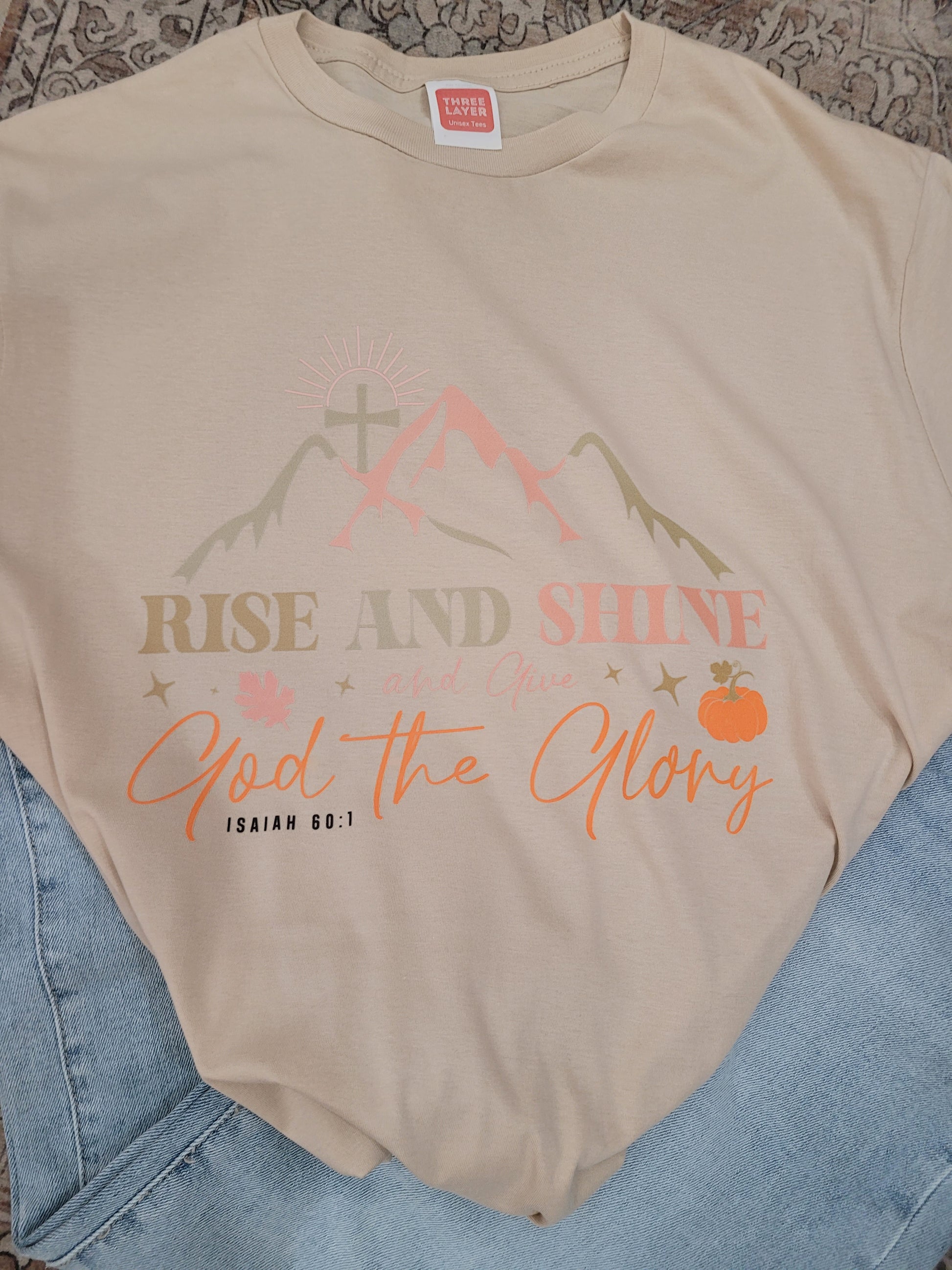 "Elevate your style with our Rise and Shine Tshirt. Crafted with a super soft fabric, this graphic tee offers both comfort and fashion. Perfect for any occasion, this tshirt will have you standing out in style."