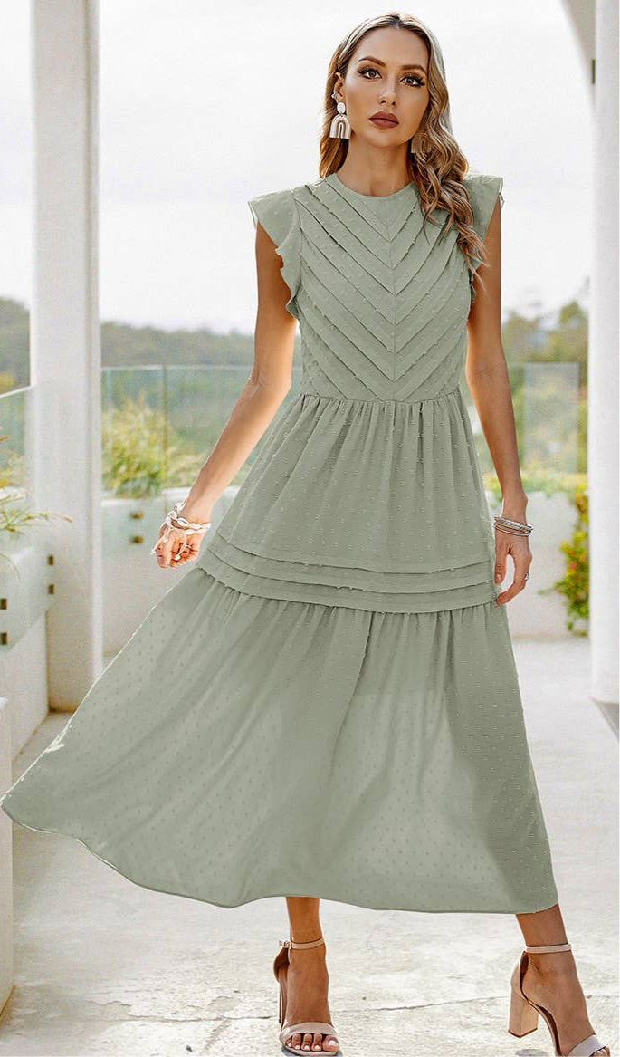 Introducing the Willow Smocked Maxi Dress in Sage. This dress is the perfect addition to your wardrobe, with its flattering smocked design and flowing maxi length. Made of soft, lightweight fabric, it's perfect for any occasion and provides a comfortable, figure-flattering fit. Elevate your style with this must-have dress!