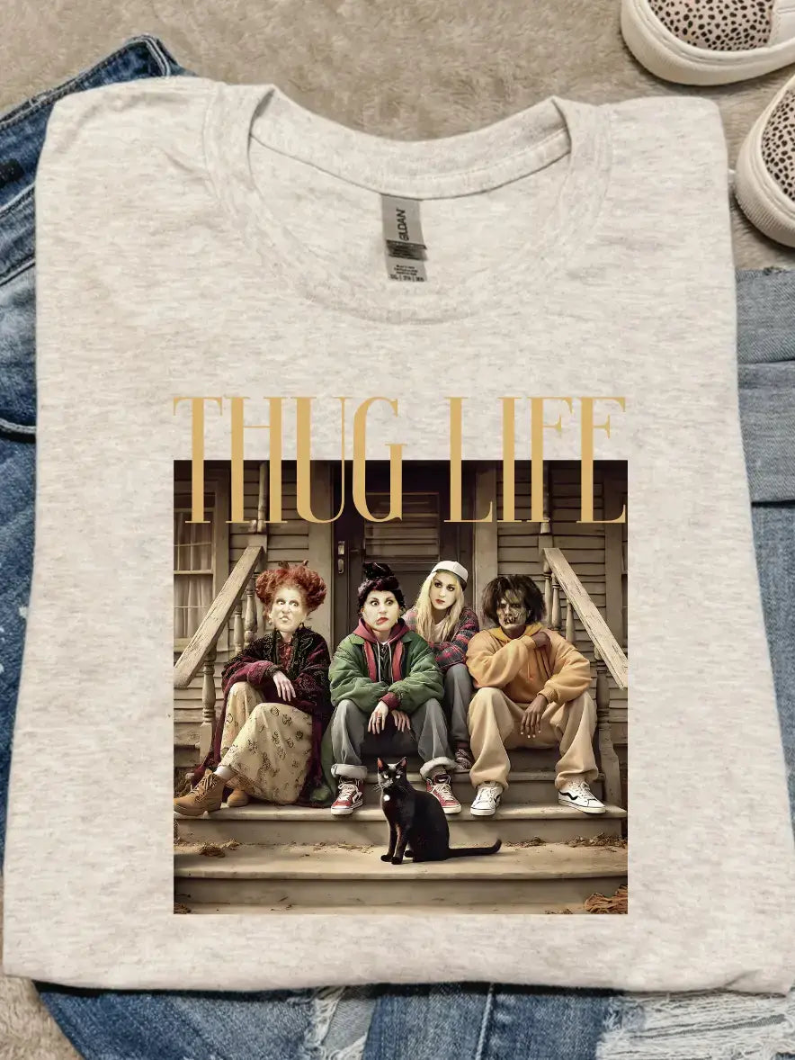 This Thug Life Witches Halloween Graphic tee offers a soft and comfortable fit. Perfect for the spooky season, this tee combines style and comfort for a truly bewitching look. Made from high-quality materials, it is sure to be a staple in your Halloween wardrobe for years to come.